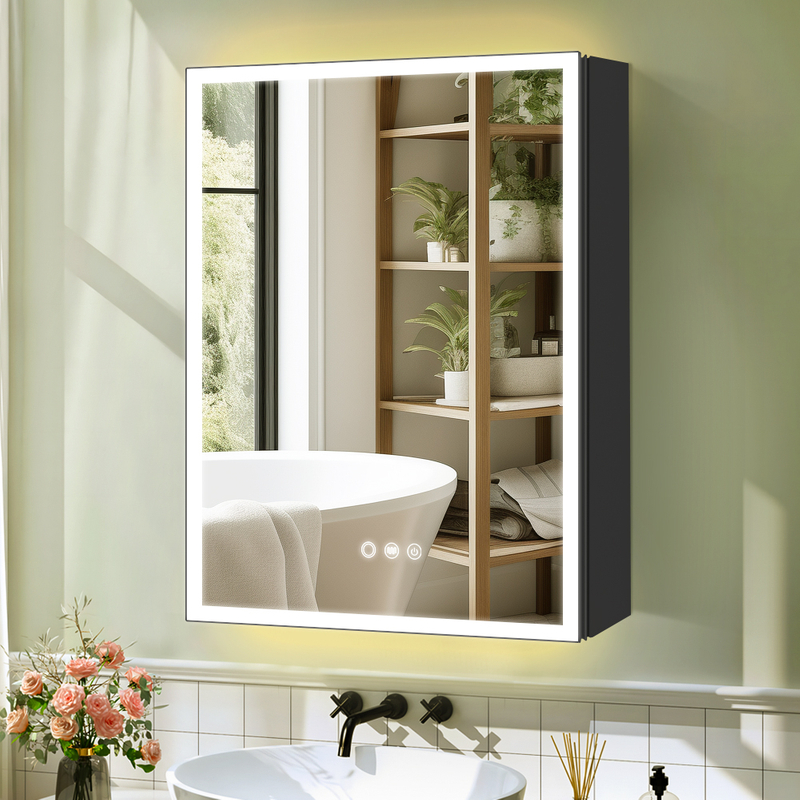 The CAS-6171 single-door aluminum mirror cabinet is a high-quality bathroom storage and lighting solution made of superior, highly corrosion-resistant aluminum. It comes with a smooth matte black finish that presents a simple, elegant and long-lasting aesthetic.