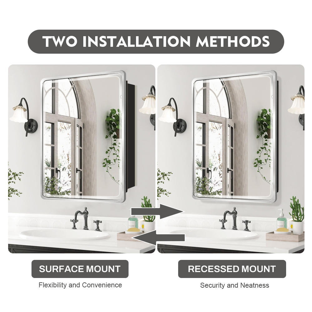 One of the most practical advantages is its dual-installation system, supporting both surface mounting and recessed mounting. Surface mounting allows quick and easy installation without complicated wall modification, while recessed mounting creates a seamless, built-in look that saves space and achieves a high-end integrated effect. This flexibility makes the cabinet suitable for various residential and commercial projects.