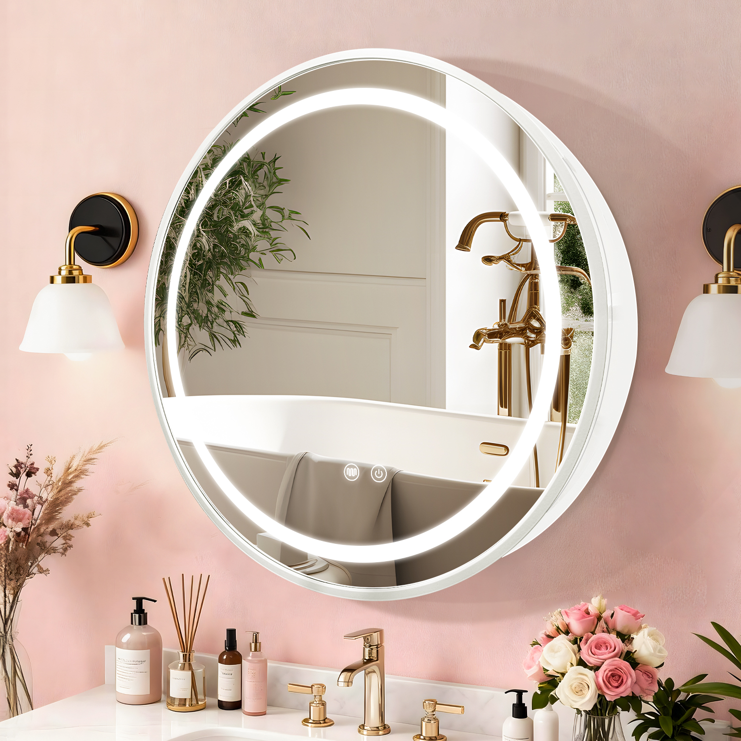 Equipped with advanced touch controls, the mirror offers 3 color temperature options (3000K warm light, 4500K neutral light, 6000K cool light) to suit different moods and needs. Long-press the touch switch to smoothly adjust brightness from 10% to 100%, ensuring precise lighting for every task, from detailed makeup to relaxed evening routines.