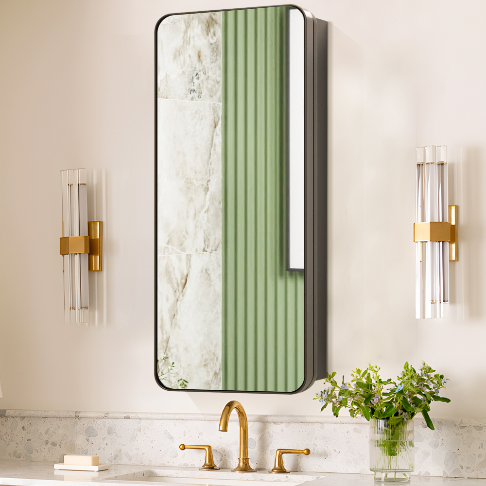 The cabinet’s slim, wall-mounted design saves valuable counter space while offering hidden storage for toiletries, cosmetics, and bathroom essentials. The single-door design opens to reveal a spacious interior, keeping your countertop clutter-free and organized.