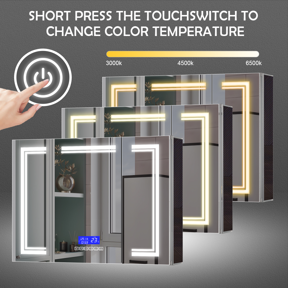 With a minimalist rectangular shape, frameless front, and double-layer LED light strips, the CAT-10080 boasts a contemporary, luxury look that complements modern, minimalist, industrial, and farmhouse-style bathrooms. It saves wall space while elevating the overall aesthetic of your bathroom, turning a simple vanity area into a premium grooming space.