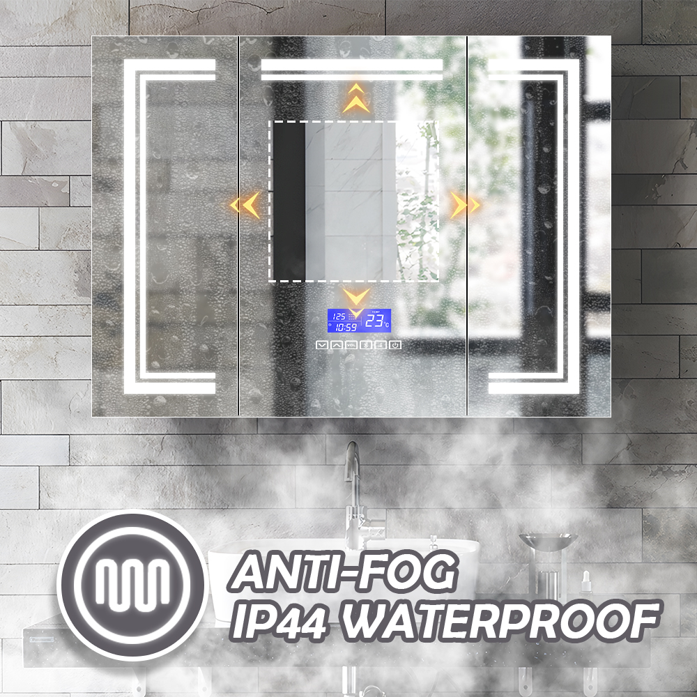 The built-in efficient anti-fog membrane heats up instantly with one tap, quickly evaporating water vapor and condensation on the mirror surface. Even after a steamy hot shower, the mirror stays completely fog-free, no manual wiping required. With an IP44 waterproof rating, it withstands the humid bathroom environment, ensuring safe and long-lasting use.