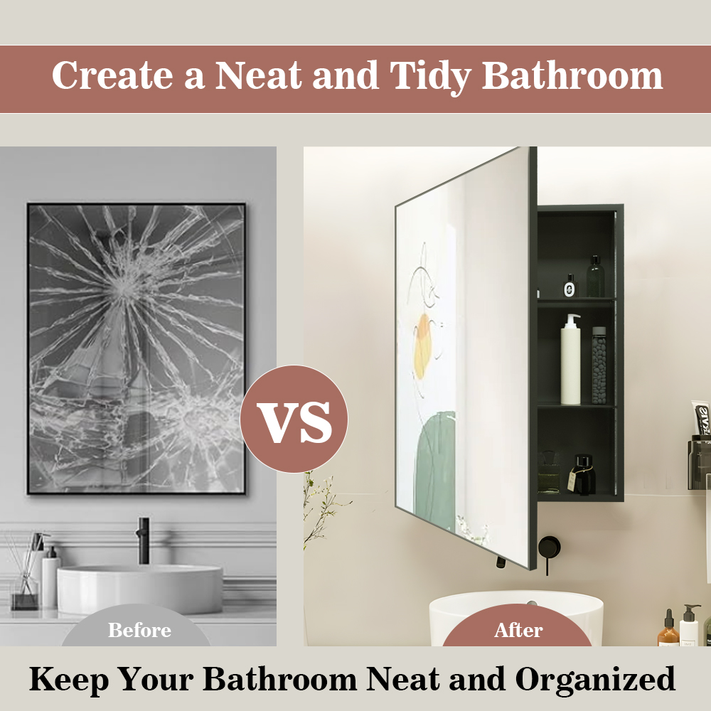 Impact-Resistant Square Steel With Powder Coated Mirror Cabinet For Bedroom