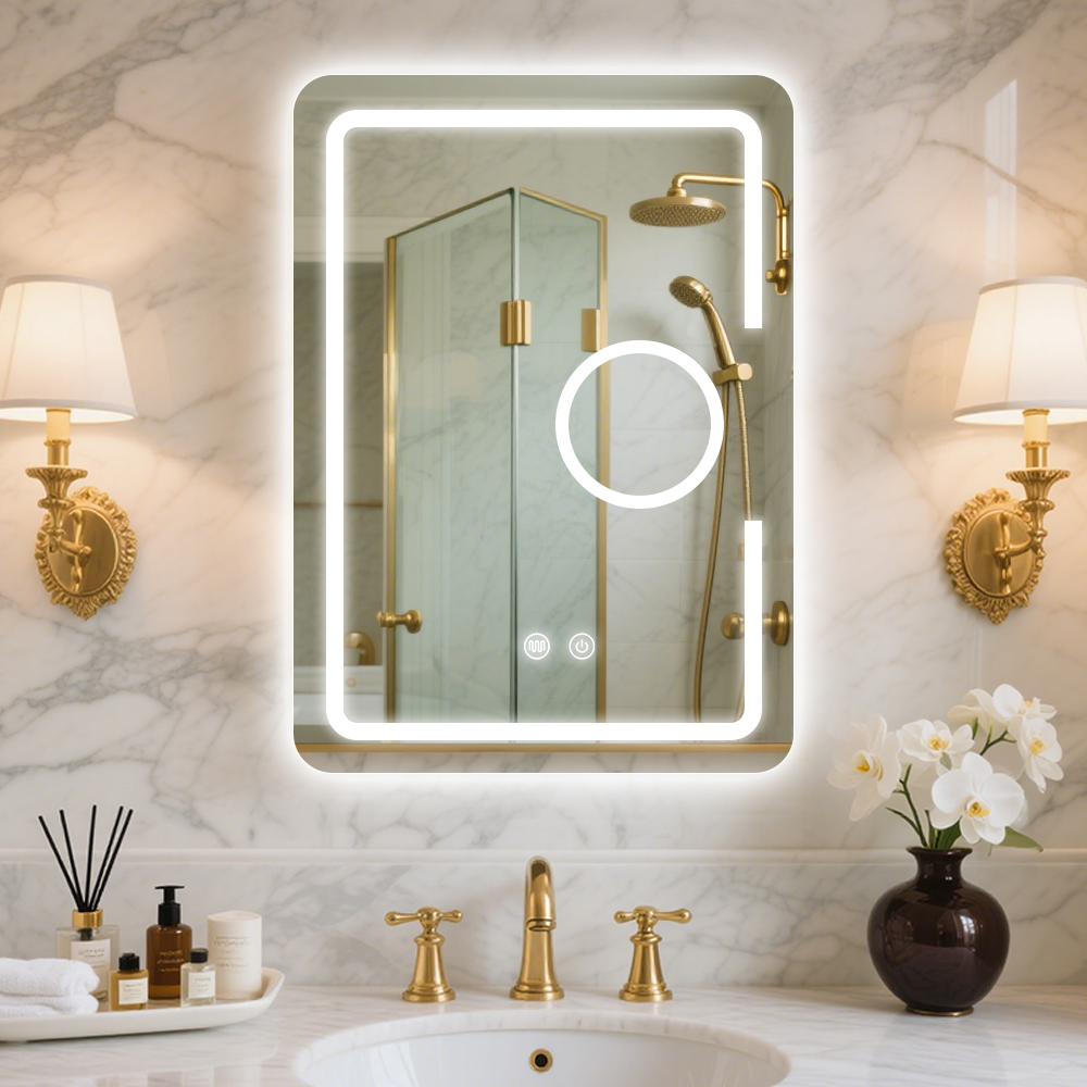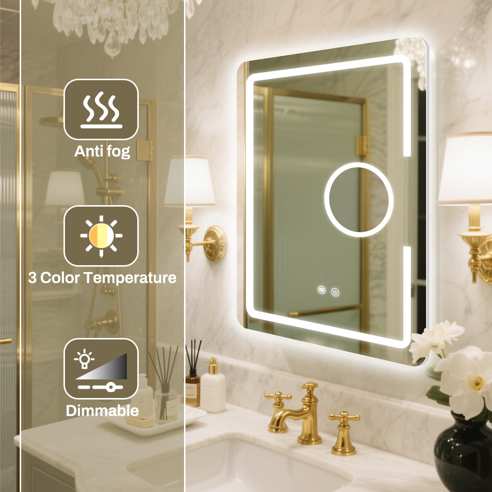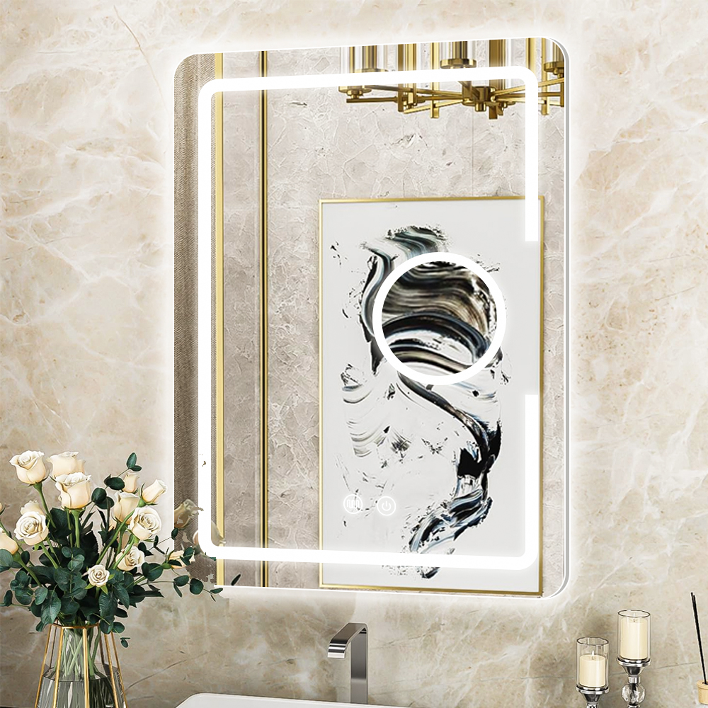 Designed for modern luxury bathrooms, the mirror’s gold frame and minimalist aesthetic complement marble countertops, gold fixtures, and contemporary decor, adding a touch of sophistication to any space. The large reflective surface provides a full, clear view, while the integrated 3X magnifier circle offers precise visibility for detailed tasks like eyebrow shaping, contact lens insertion, or skincare.