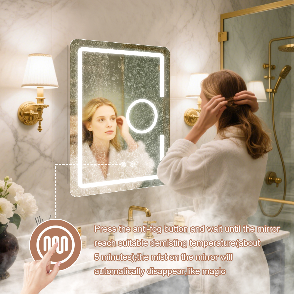 Say goodbye to foggy mirrors after hot showers with the built-in defogger. Simply press the anti-fog touch button, and the mirror will heat to an optimal demisting temperature in approximately 5 minutes, automatically clearing steam and moisture for a crystal-clear reflection, no manual wiping required.