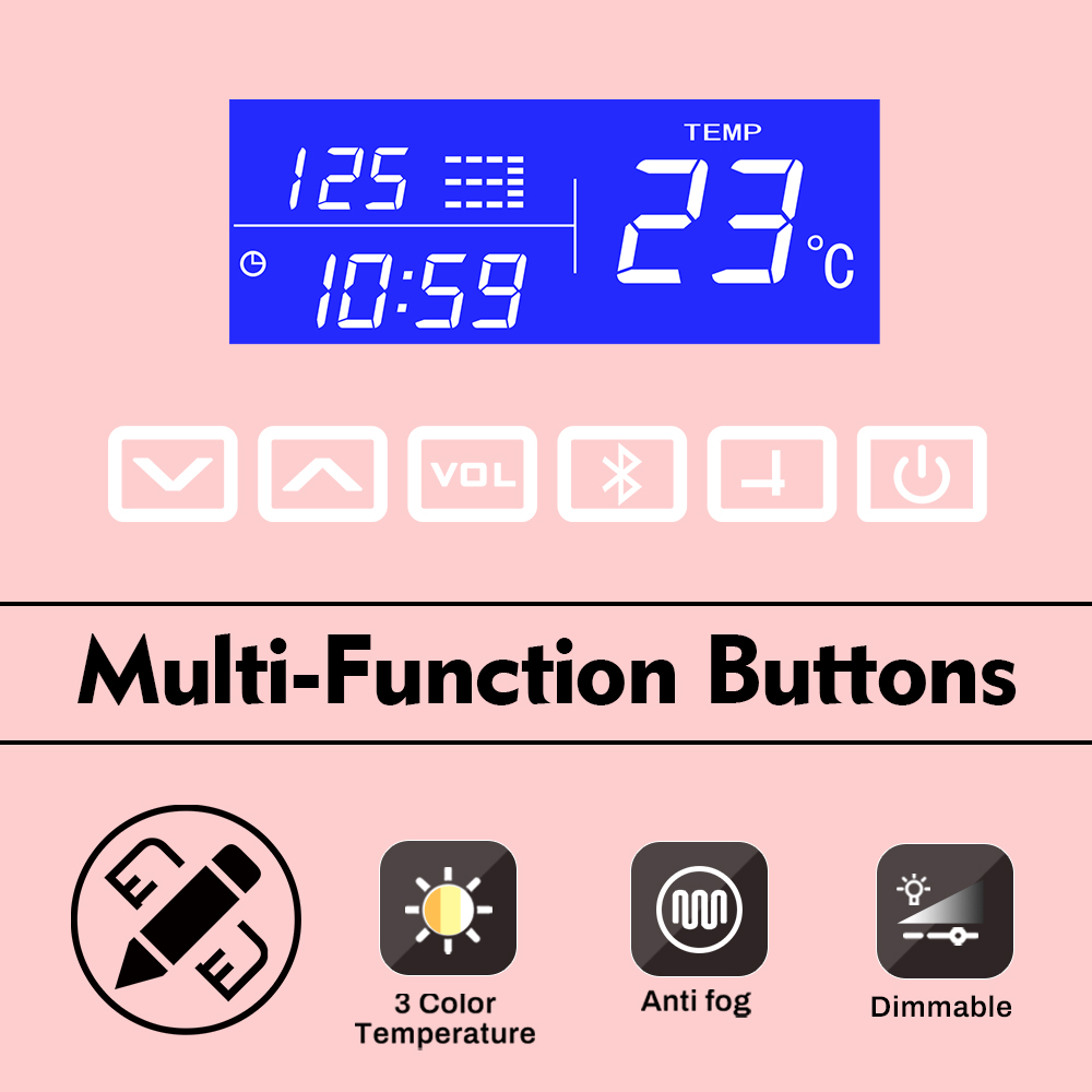 A standout feature is the multi-function digital display, which shows real-time time, temperature, and other information, paired with built-in Bluetooth speaker controls for hands-free calls or music playback while you groom. The intuitive touch buttons let you easily adjust volume, switch tracks, and control lighting and defog functions.