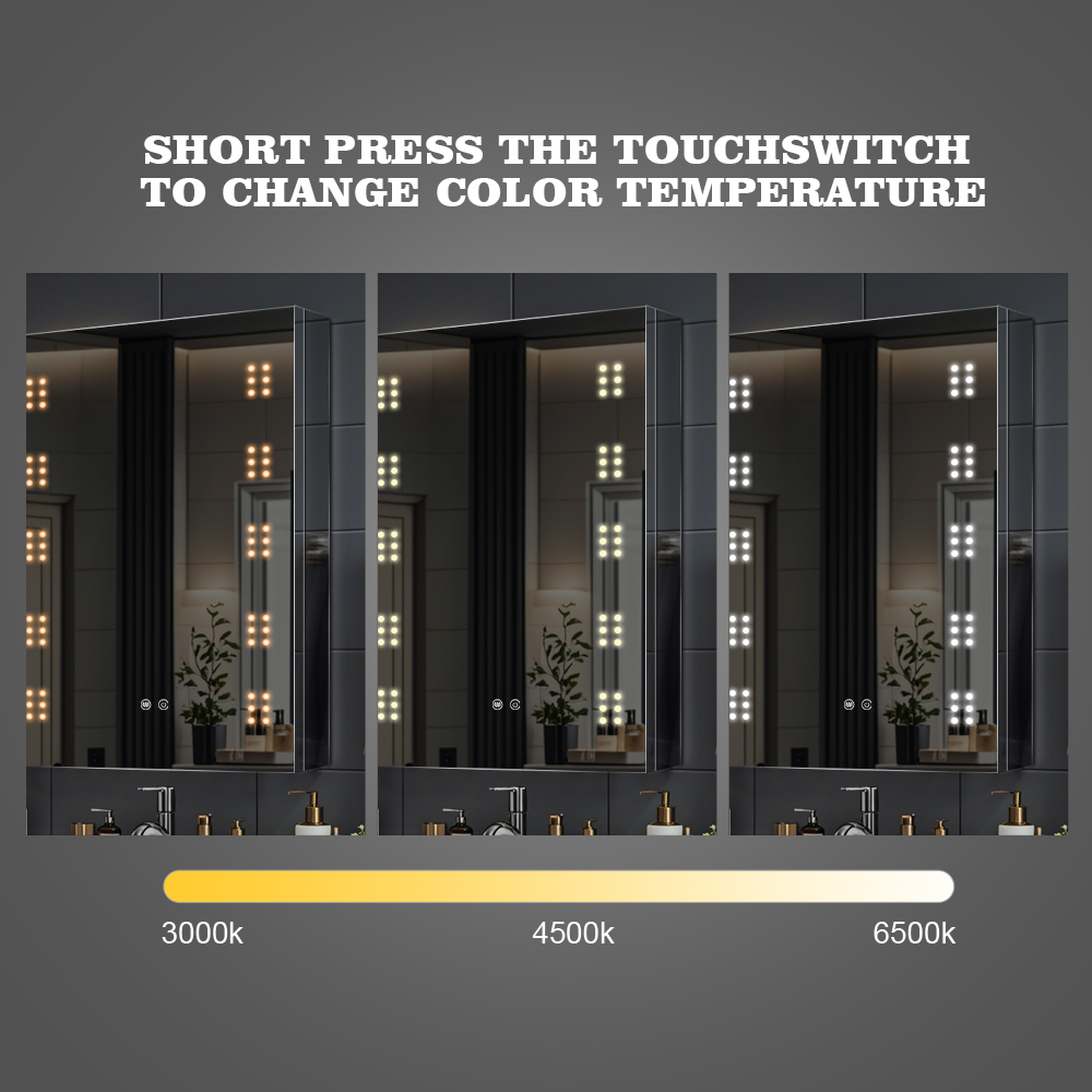 The CSS-5070 features built-in LED lights with three adjustable color temperatures (3000K warm white, 4500K neutral white, 6500K cool white) and stepless dimming, allowing you to tailor the lighting to your needs—from a warm glow for a relaxing bath to bright, natural light for precise makeup application. A simple short press on the touch-sensitive switch changes the color temperature, while long press adjusts the brightness, putting full control at your fingertips.