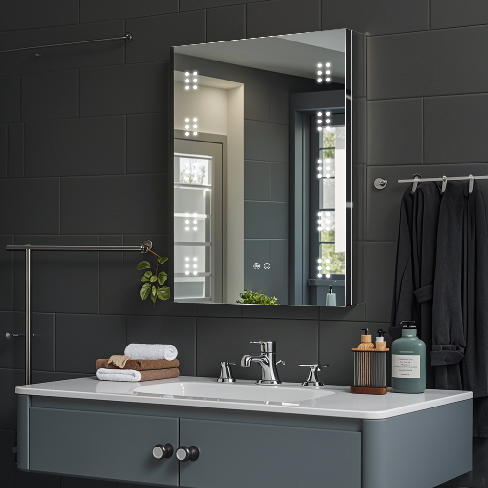 Designed with a hidden cabinet behind the mirror, the CSS-5070 provides generous, clutter-free storage for all your bathroom essentials, from skincare products to toiletries. The sleek, frameless design with polished edges adds a minimalist, modern touch, blending seamlessly with dark, light, or neutral bathroom decor.