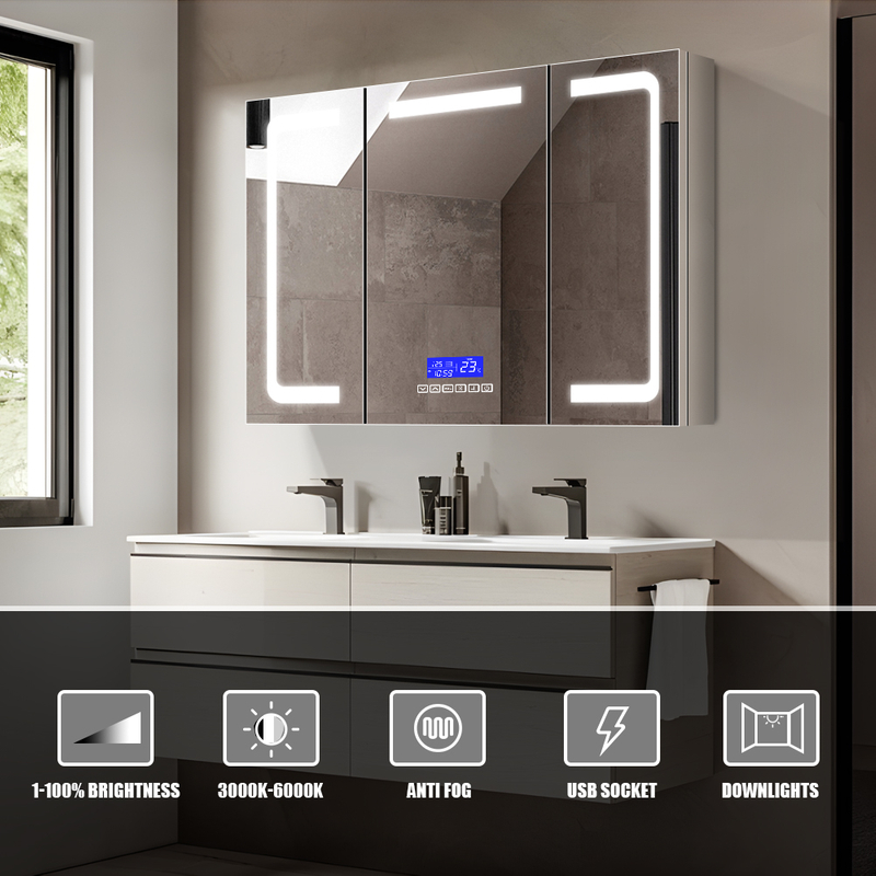 The operation of the stainless steel medicine cabinet is quite easy. The LED lighting is controlled via a touch switch: a brief press switches between three color temperatures (3000K/4500K/6400K), while holding it adjusts the brightness as needed. To activate the anti-fog feature, press the defogger button, and after a few minutes, the fog will dissipate, ensuring a clear reflection. Remember to turn off the lights and defogger after use to conserve energy. Regular cleaning is advised to keep the cabinet looking great and functioning well over time.