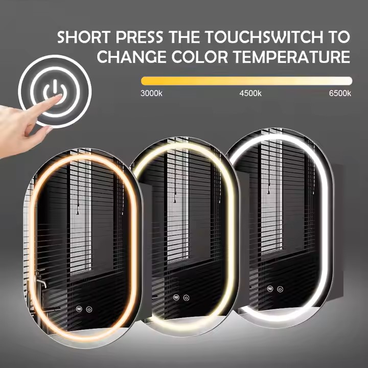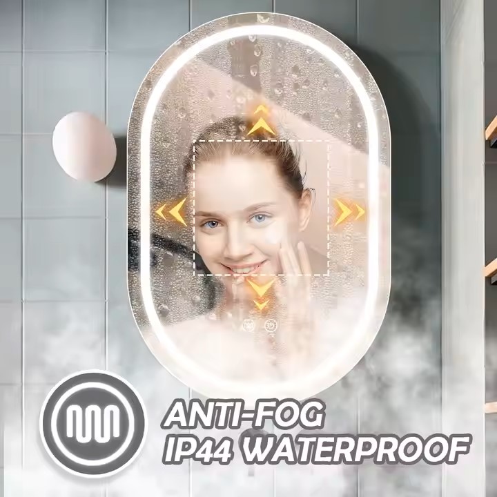 Its unique racetrack oval shape stands out from traditional rectangular cabinets, softening sharp bathroom lines and adding a modern, elegant touch that complements diverse decor styles. As an LED mirror cabinet, it integrates practical features: dimmable LED lights offer adjustable brightness, perfect for grooming tasks like makeup or shaving, while a built-in defogger quickly clears post-shower condensation, ensuring a crisp reflection without manual wiping.