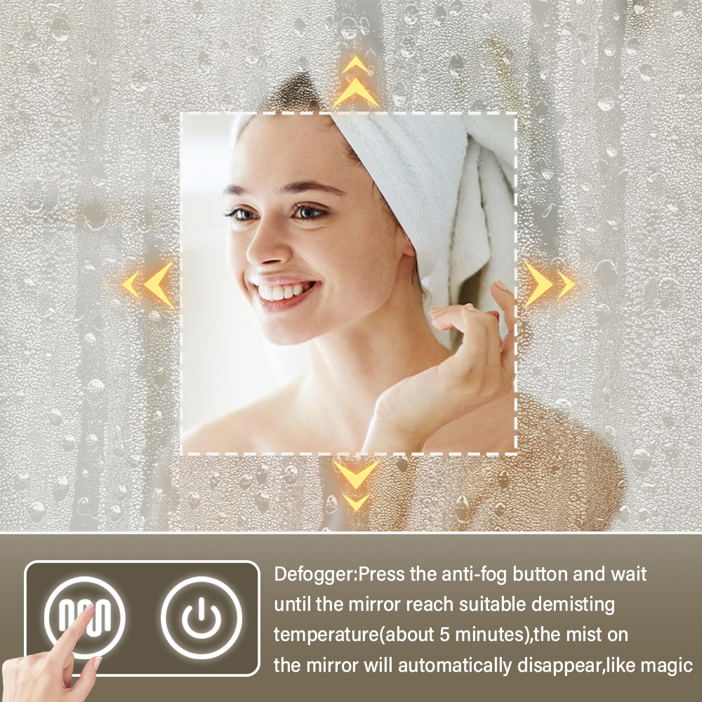 Say goodbye to foggy mirrors after hot showers with the integrated defogger. Simply press the anti-fog touch button, and the mirror will heat to an optimal demisting temperature in approximately 5 minutes, automatically clearing steam and moisture for a crystal-clear reflection, no manual wiping required.