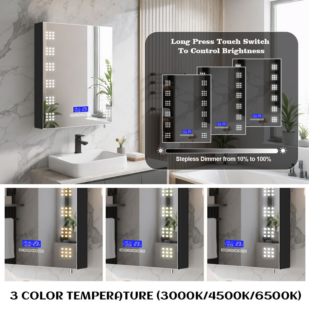 Equipped with touch controls, operating the mirror cabinet is a breeze. Features like the anti - fog function, 3CCT lighting adjustment, and dimming can be easily accessed with a simple touch. This user - friendly design ensures a seamless experience, eliminating the need for complex buttons or knobs.