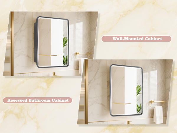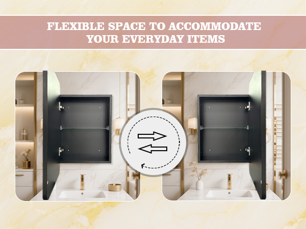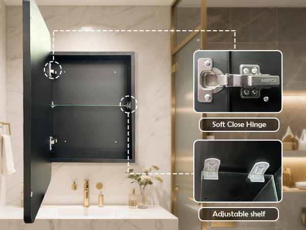 Designed for versatility, this cabinet supports both recessed and wall-mounted installation, allowing you to choose the best fit for your bathroom layout. It also offers left or right door opening directions, providing flexible placement options to match your space and usage habits. The high-quality soft-close hinges enable smooth and quiet door operation, preventing slamming and extending the service life of the cabinet.