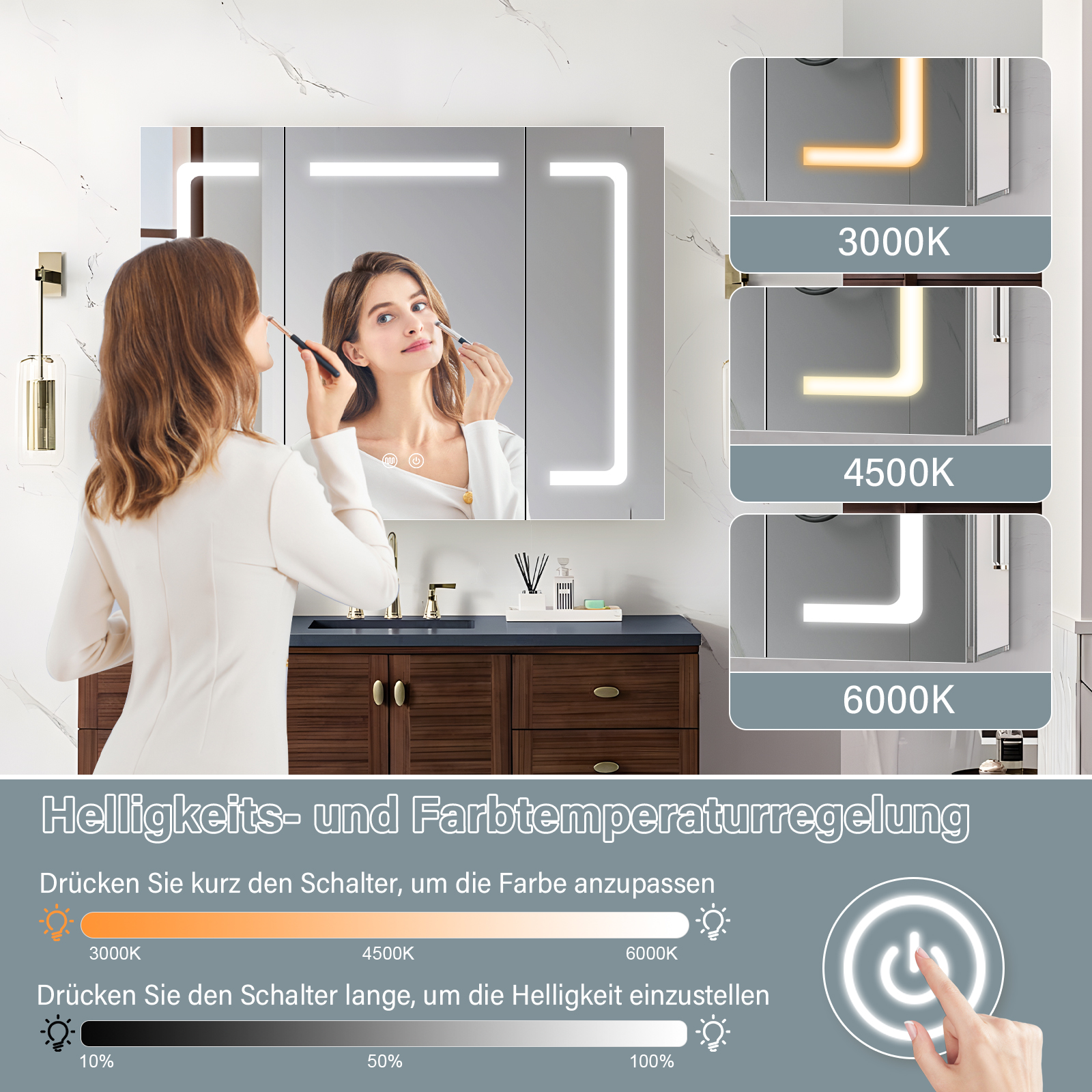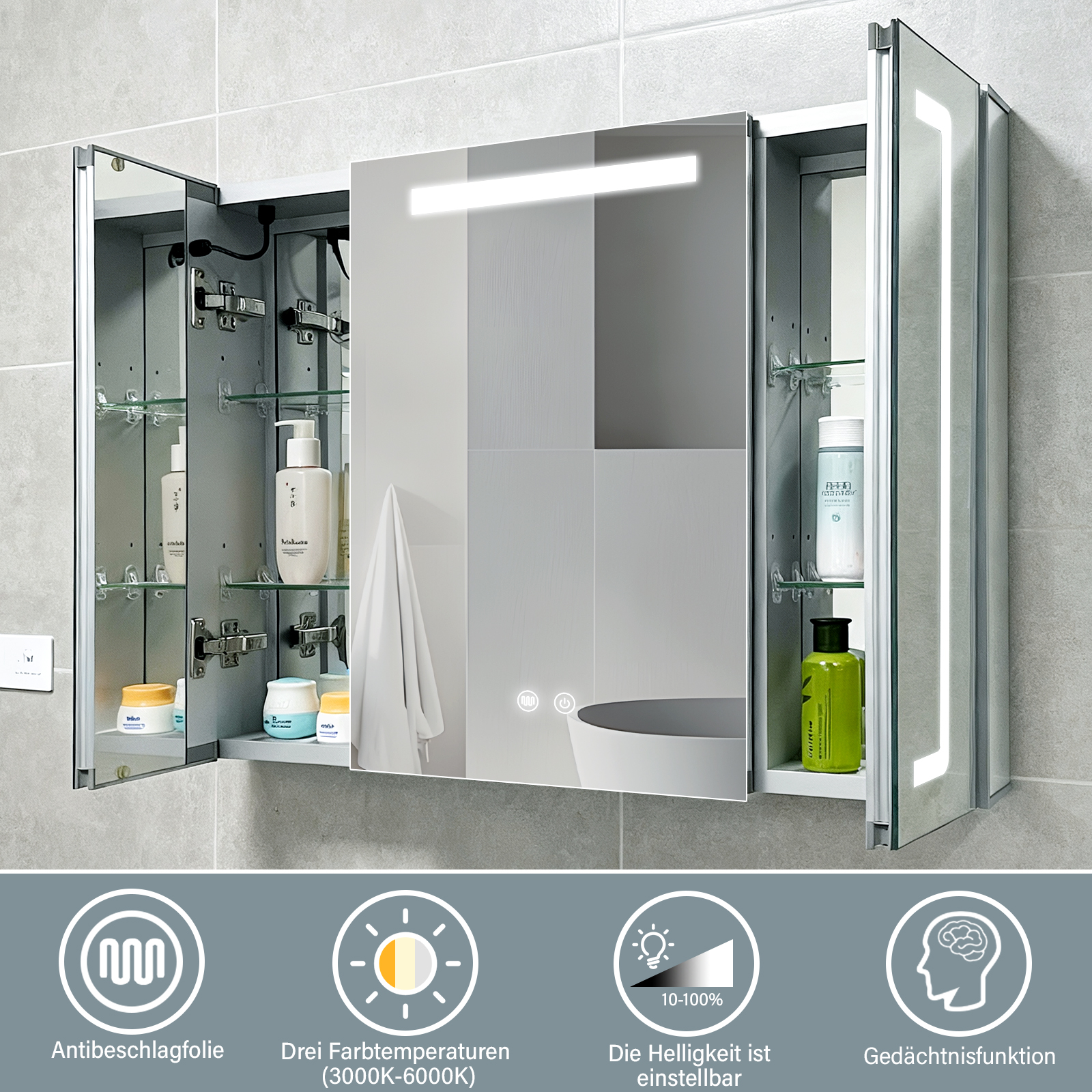 The CAT-8161 Triple-Door Aluminum LED Mirror Cabinet is a premium bathroom essential engineered with high-grade, corrosion-resistant aluminum and a sleek modern finish, blending durability with sophisticated aesthetics. This tri-door cabinet seamlessly integrates cutting-edge LED lighting, rapid anti-fog technology, and flexible storage solutions, catering to the practical needs of modern bathrooms while elevating their overall style. Whether for daily grooming, storage, or ambient lighting, it delivers a seamless blend of functionality and luxury, making it an ideal choice for discerning homeowners, hotels, and commercial projects.