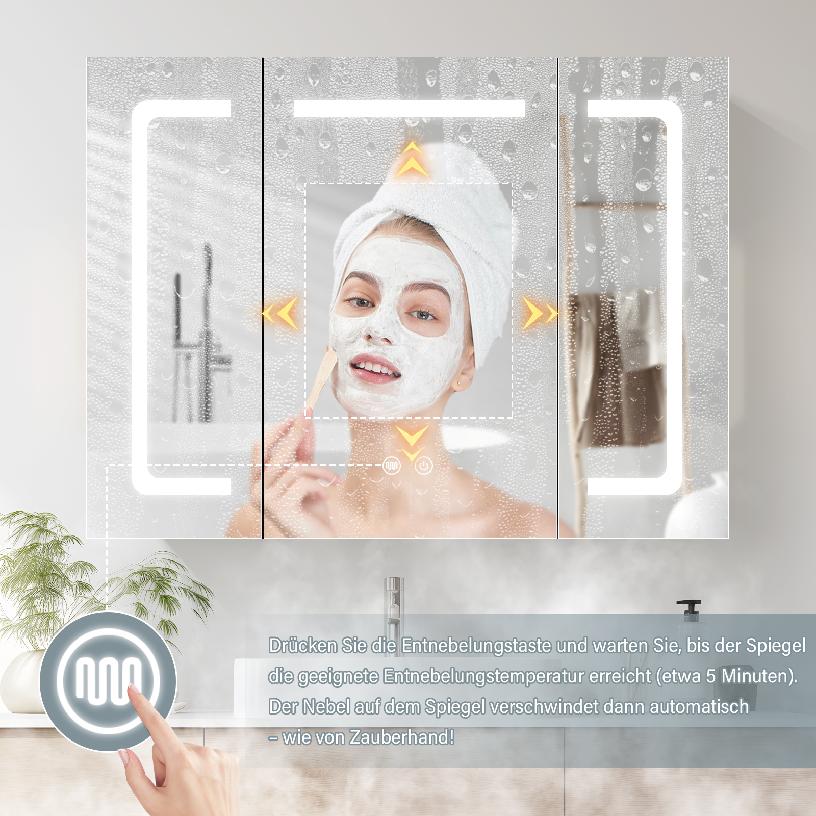 Equipped with a fast-acting anti-fog function that clears condensation within minutes, eliminating bathroom fog issues and ensuring clear visibility for grooming routines at any time.