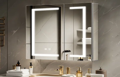 Ensure the wood mirror cabinet complements your bathroom’s vanity, countertops, and hardware. Match or contrast finishes based on the overall aesthetic for a cohesive look.